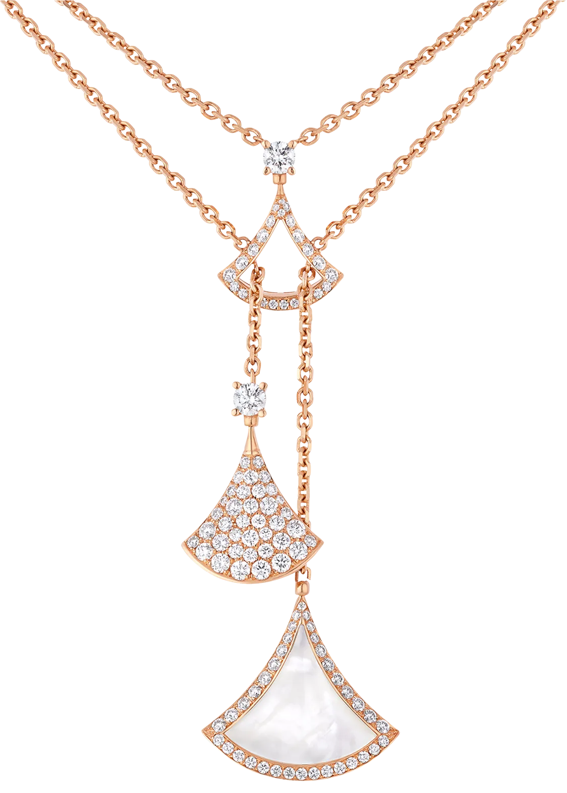 ネックレス(PG×MOP×ダイヤモンド)¥561,000、ネックレス(PG×MOP×ダイヤモンド)¥380,600、ピアス(PG×MOP×ダイヤモンド)¥513,700、リング(PG×MOP×ダイヤモンド)¥649,000 Bvlgari