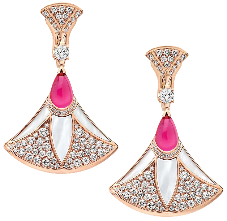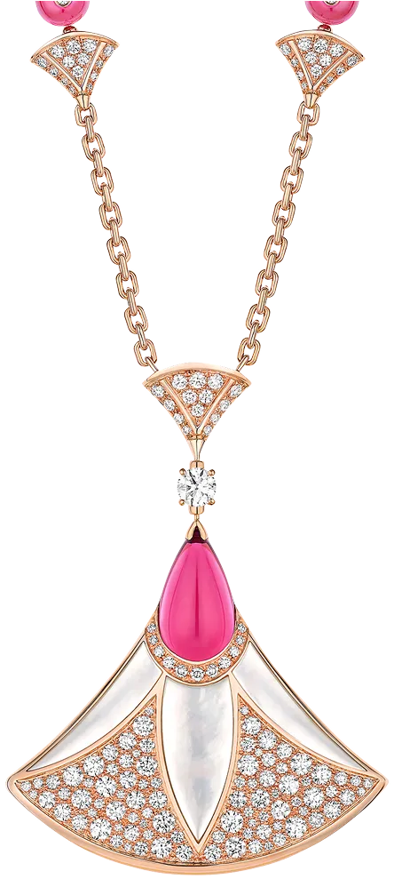 ふと目にした瞬間、自然と心が惹かれる、優美に広がる扇形が印象的な「ディーヴァ ドリーム」。ローマのカラカラ浴場の床を彩るモザイク画から着想を得ているモチーフだが、日本で親しまれるイチョウの葉のようにも見え、自然のエネルギーと洗練された曲線美のバランスが魅力のコレクションだ。マザーオブパールやパヴェダイヤモンドをはじめ、ルベライト、カーネリアン、マラカイトなど、デザインに使用されるジェムストーンの豊かな色彩によって、そのアイコニックなジュエリーはくるくると表情を変え、幅広い世代の女性たちを魅惑的に輝かせる力を秘めている。特別な日だけでなく、日常にも取り入れやすい「ディーヴァ ドリーム」のジュエリー。それは現代を生きる女性を鼓舞するものであり、同時に身につけることによって大きな喜びをもたらし続けている。